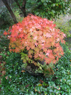 玉竜などの常緑の下草とカラフルな落葉の取り合わせが、賑やかな景色を残しています。マツバタイゲキのオレンジと黄色の鮮やかな紅葉も、この季節だけのお楽しみ。