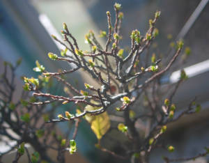 寒暖の差の激しい中 他の雑木に先だって カリンの実生寄せが