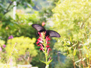 赤花沢ギキョウ 数日の間、蝶が通っていました。