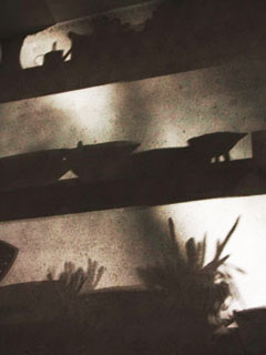 昼下がりのひと時。台所の壁面に映し出されるシルエット