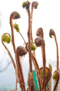 2012年5月。陽光の中で ようやく植物たちが新芽を伸ばしています。シダ類などは朝新芽がゆるんだと思ったら、 昼にはグーンと背伸びをして柔らかい葉を広げ、 気持ちよさそうにしています。 そろそろ虫たちも動き出してきます。奏デル盆栽では、農薬を使いません。かわりに木酢液で殺菌・消毒を行います。 生育に支障のない程度にガードして、 なるべく生態に負担をかけない。 そんなことを心がけて 工夫をしながら、今年も虫たちと対決します。