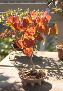 幸い5m程の若い木でしたが、それでも塀には支えきれず、ギイギイ不気味な音をたてながら 少しずつ盆栽の上に覆い被さってきます。