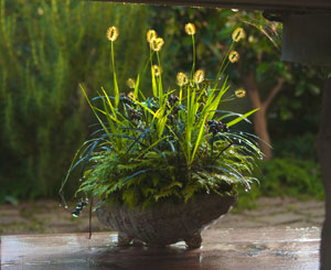 気がつけば 庭は風に引きちぎられた林の枝葉で覆われ、棚上の植物も見えない程。