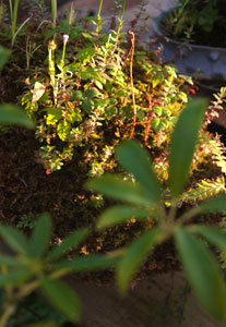 盆栽に食い込んだコナラの枝をそっと外して 植物たちを見てみると・・・みな無事でした。