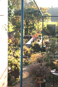 そんな事情から、育てている植物の一部を 奏デル盆栽に引っ越しさせて、加藤さんにお預けすることになったのです。ジャカランダなど 寒さに弱く 室内にとり込んでいた植物は、奏デル盆栽の温室にお邪魔させて頂くことにしました。