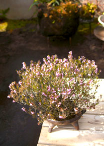 少しずつ温室から外へ 植物の移動も始まりました。風が強く 花粉や土埃が舞い上がり、せき込みながらの外仕事になったりもしますが、春の庭は やっぱり気持ちがワクワクします。