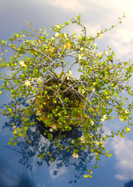 集中できるのがよいらしく、去年よりも庭がキレイな夏の奏デル盆栽です。
