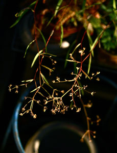 掃き掃除をしていると、意外な場所につよい勾配がついていたり、あまり手を入れることのなかった場所の草たちが、驚く程に勢力を拡大していることに気づきます。棚下付近は、盆栽の種がこぼれて 意外な植物が元気に育っています。長い間 みんなに踏みしめられた通路は、へこんだり ふくらんだり 土がむき出しになったりして 三和土のよう。貫禄のある地面になってきたなぁと眺めています。