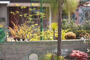 あうりんこ星の庭木は ほとんどが かつて盆栽として 棚に鎮座していた植物たちです。十数年をかけて それぞれの想いのままに成長し、棚上の盆栽と同様に あうりんこ星を美しく彩っています。