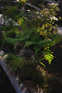 加藤さんは 秋の展示がない分、じっくりと植物を観察しながら、取り込み時期を探っている様子。朝晩と日中の温度差がかなり出てきましたが、気になる植物の防寒に 新聞紙を夜間に被せる程度にして、過保護にならぬようにしています。