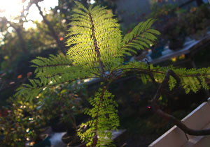 早朝の庭で深呼吸をすると、冷たく乾いた空気が ハッカアメのようにスーッと鼻に抜ける日が訪れるようになりました。棚上の植物はそれぞれに深く色付き、充実した秋を迎えています。その一方で 夏の激しい消耗のせいなのか、木ものは 早くも冬眠へ向けて 葉を落とし始めました。