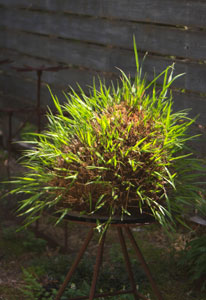 天気はみるみる回復し、快晴。ぐんぐん植物が乾いていきます。ジョーロで様子を見ていましたが、ホースやりに切り換え。初日は 動線が定まらず、乾きを確認している間に庭や温室が水浸しになってしまいます。ホースもよじれ、棚の足に変に引っかかり あせります。全体を見るのに 1時間もかかってしまいました。