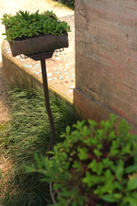 天気はみるみる回復し、快晴。ぐんぐん植物が乾いていきます。ジョーロで様子を見ていましたが、ホースやりに切り換え。初日は 動線が定まらず、乾きを確認している間に庭や温室が水浸しになってしまいます。ホースもよじれ、棚の足に変に引っかかり あせります。全体を見るのに 1時間もかかってしまいました。