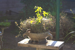 時折 降り止んだ庭を歩くと、盆栽も庭の草木もみんな輝いて、驚きの早さで生長しています。棚上も庭も、手を入れたくなる場所ばかり。