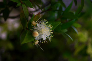 地中海原産の植物 ミルテの花が、我が家ではじめて咲きました。