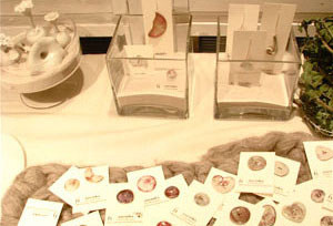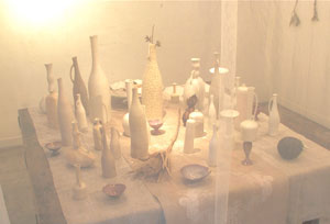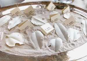 RARIさ んのアドバイスで、陶のボタンや小さなオブジェ ひとつひとつにタグをつけたり、台紙に留めたりしてみま した。すると繊細な表情がよく見えて、とてもいい。 展示も 砂を使って、雰囲気と安全性を兼ねるなど、学ぶ ところが色々ありました。 今回 携わることのできたこの作業。小さなものも ちゃんと見てもらえるうえに、作業自体がおもしろかったです。 冬の間の楽しみが また増えそうな予感がしています。