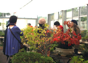 それぞれの秋の姿をゆっくり楽しみたいところですが、那須の冷たい風は あっという間に冬の空気を運んできてしまいます。温室に取り込むため、葉を落としはじめた木は 手を入れて落葉を促し、草は刈り込んで古葉などを整理します。作業台へ持っていき 次々と葉を落としてゆくと、鮮やかな色が足下に広がります。カタチも色々。なにげないことにも 思っても見ない美しさがあります。