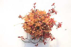 鉢の直径が 10㎝もないツルウメモドキのまわりにも、実をついばみ 散らかした跡。