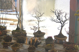 晴れた日の朝 温室の窓を開けると、強い日射しに温められた土の匂いを感じるようになりました。木々の芽がぷっくりと色づいて、枝先を赤く染めているものも。