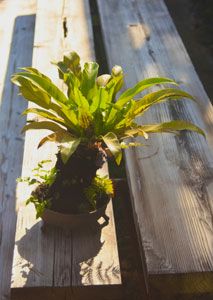パチパチ鋏を鳴らしながら 植物に手を入れ、室だしをはじめています。