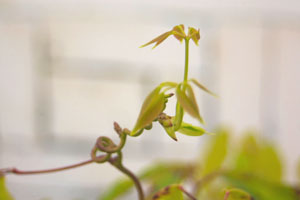 水やりをします。ゆっくり観察していくと、やわらかい新芽に 動き出した小さな