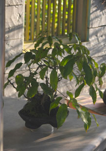 朝 あうりんこ星に到着すると、冷えた空気の中で、落ち葉を掃く箒の音が聞こえてきます。落ち葉が舞い散る様子を ただ見ているだけならきれいですが、盆栽の間に入り込み 乾きが見づらくなったり、棚に汚れをよぶので、毎日まず棚上から 掃除を始めます。