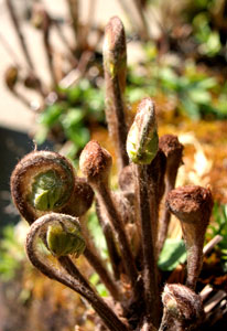 植物を出しはじめました。温かな日には芽がどんどん動き、あっという間に枝先から