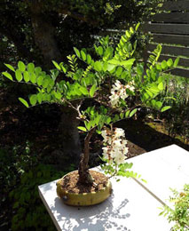 大きな白い花を咲かせたニセアカシア。20年前、初めて訪れた奏デル盆栽で |