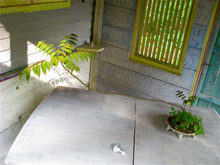 蒸し暑いような でも 半袖では心許ない冷え性の盆栽組は、えりまきや上着を着たり
