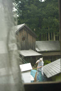 慌てて カポックなどの室内植物を 取り込んでいます。