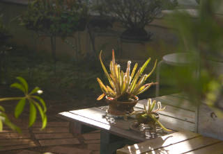少しの風でも、新芽や花柄がとめどもなく 盆栽や庭に降ってきます。空中でふわふわと絡まりあい まりものようになって、大量に落ちてきます。