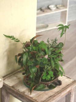 一方 マツバタイゲキが暑さに強いことも意外な発見でした。初夏に黄色の花をつけたと思ったら、その名にちなむ松葉のような繊細な葉をゆらゆらと八方にひろげ、棚下や