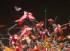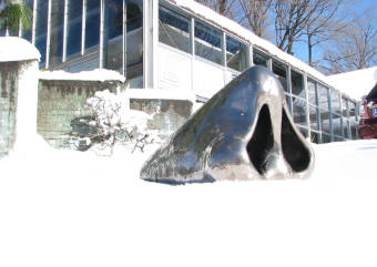降りしきる雪の中、くるみの木に積もる雪を豪快に落としながら、大きな尾を振り