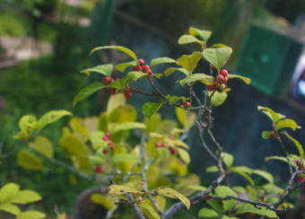 せっかく色づいてきた葉や 実をポロポロ落とす姿を、 切なく見守っています。