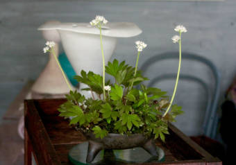 ギャラリーが始まり、外棚に並ぶ植物も増えてきました。庭もあちこち花ざかり。