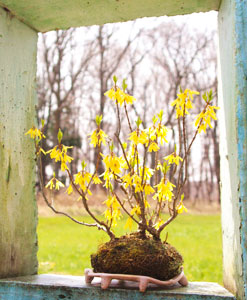 雪柳の白い花とミツマタのレモン色の花が 交互にゆれている。