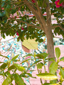 いつでも撮れるように デジカメを温室のテーブルに置く。