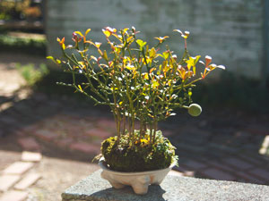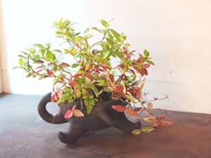 テイカカズラ・ハツユキカズラ テイカカズラを囲むように紅葉をはじめたハツユキカズラ