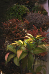 霜やけして 褐色を帯びた常緑の木や シダの葉も