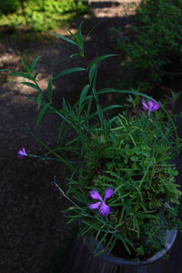 牧草地に近い庭の片隅では 中国草ボタンのうす紫の花が