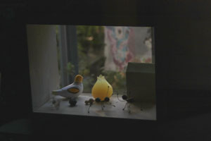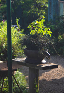 朝の水やりでは気配のなかった盆栽に わずかの間に集結している。