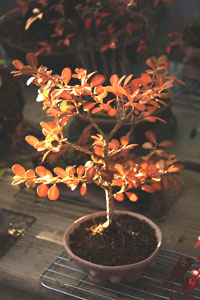 盆栽棚も パール色のビロードを敷きつめたように 光っている。