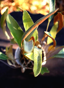 おおいを 取りのぞく。タニワタリの木や 窓ぎわのヒトツバなど