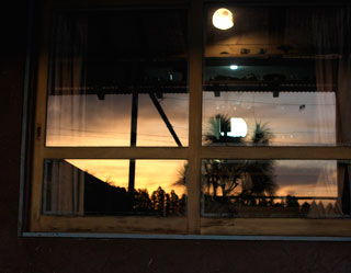 夕焼けにふちどられて 横に並ぶ木々の様子が くっきり映る。