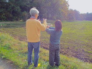 黄金色に染まる雑木林をぬけた先の街に通じる裏道で