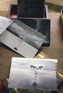 奏デル盆栽を モノクロで撮影した 作品のポストカードを紹介している。