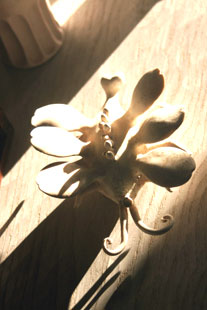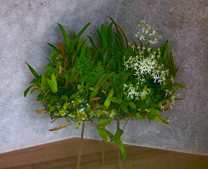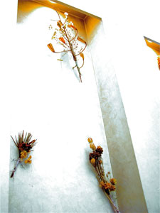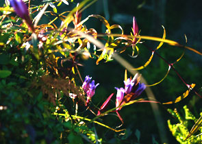下の方は とっくに落葉したのに 赤い茎の先端で しがみつくように落ちないでいるミソハギの紅葉が 風になびいている。