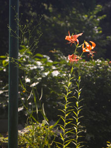 コオニユリのオレンジが となりで咲くミシマサイコの