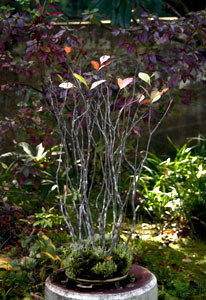 紅い葉を 数枚のこすばかりで 連立する華奢な幹や枝もようが