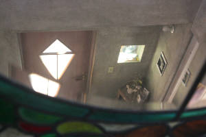 階段を上がって 踊り場までお通しして 展示をご覧頂いていたのを